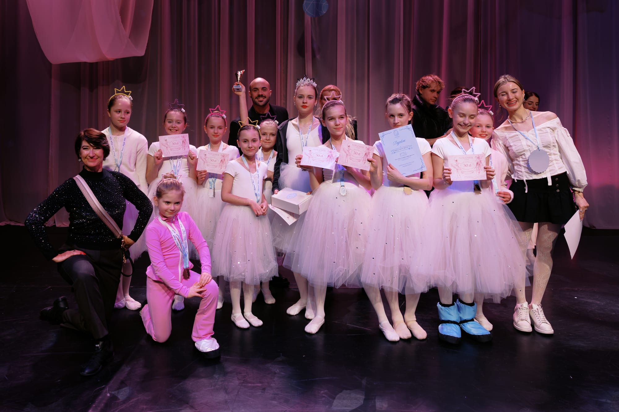 Formation modern jazz for children aged 5–8 was underway. I was waiting for my teacher to do my hair, and in the meantime I went to the auditorium (where the competition was taking place) to watch the little ones. Some formation was performing a Barbie routine.